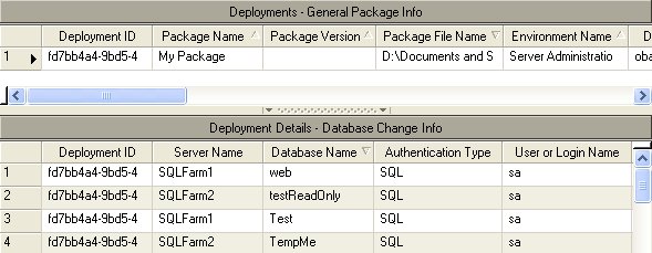 [DeploymentID] – Holds a unique identifier for each package deployment. This column is also used to map between general package information entries in dbo.utbPackageDeployments and the corresponding detailed DB change records in dbo.utbPackageDeploymentDetails.