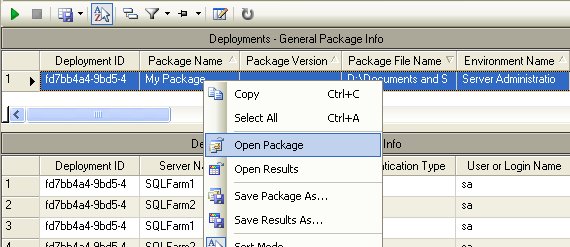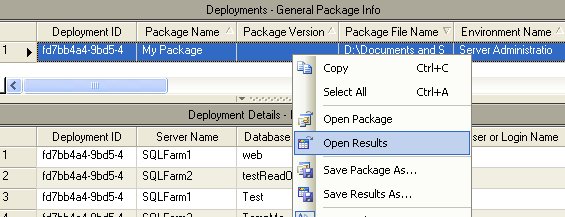 3. In the top grid, right-click the row that contains the deployment information and select Open Results from the context menu.