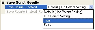 Save Script Results – By default, Combine will not save the aggregated results. To enable results saving you must first select the script in the Package Explorer and set the Save Script Results Enabled property to True, as demonstrated in the figure below. After this property is set to True you will see all the different options that can be set for the results saving.