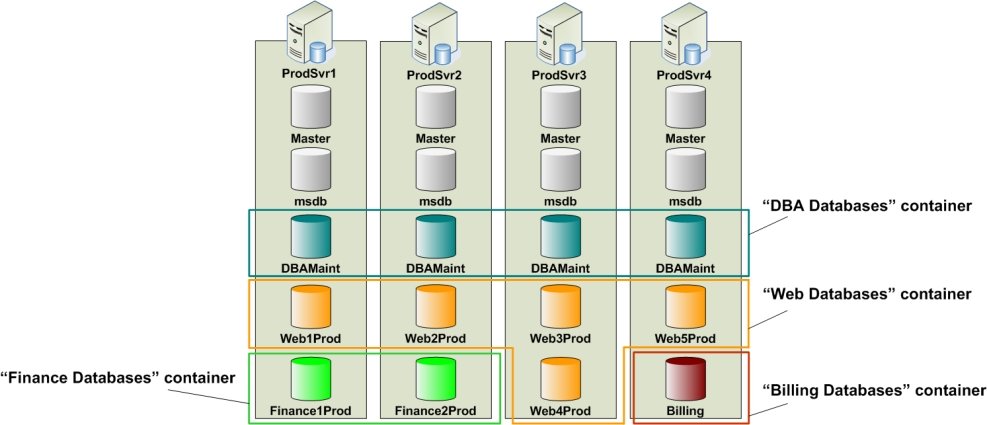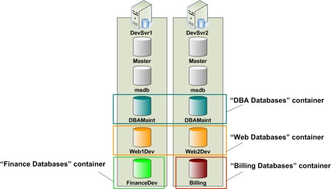 Containers allow users to group multiple databases into a single entity so that scripts and queries could be run against all databases in the Container in parallel. Throughout this document, the term script is used to denote all types of SQL and T-SQL statements, such as table and user creation statements, stored procedure and SQL job execution commands, queries, or any other data definition or data manipulation statements.