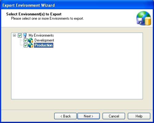In the next window you will be asked to select the Environments to be exported.