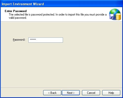 If the file you are trying to import is password-protected, for example when you receive an exported environment file from another user via insecure email, you will be asked to enter the same password used when the environment file was originally exported.