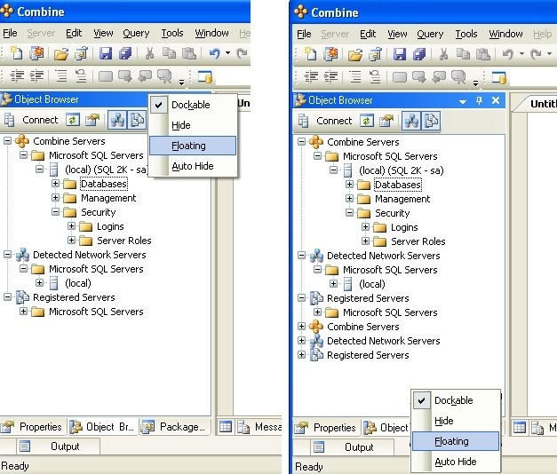 A window is referred to as a Floating Window if it can be moved around freely without depending on other windows in the application. For example, in the figure below, the Object Browser window is floating.