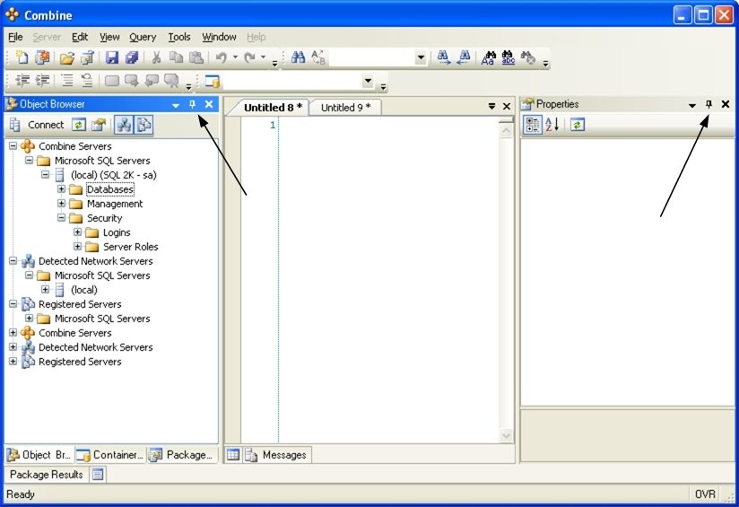 Consider the following example that illustrates tabbing and auto-hiding. Pinned windows are those in which the pin icon is drawn vertically
