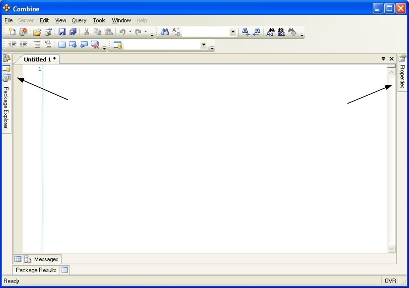 An icon will be created for each auto-hidden form, allowing you to access the form as needed. The form will appear each time you press the icon and will disappear once you click outside of the form. The figure below illustrates the case where the Properties window, Object Browser, Container Manager, and Packages Explorer windows are all auto-hidden.