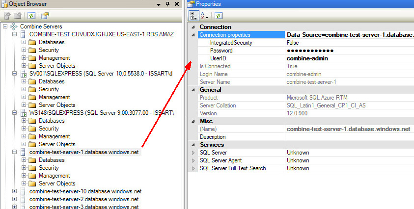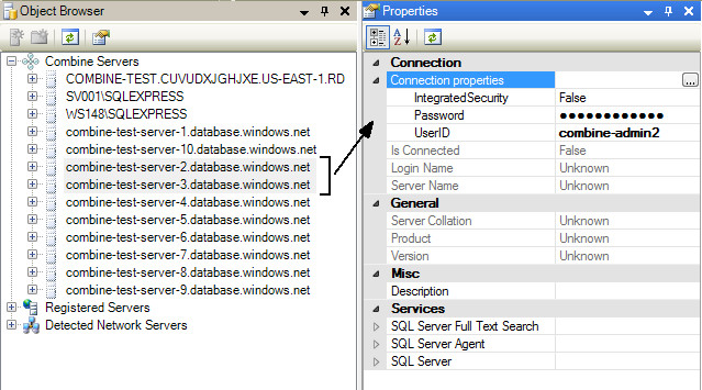 Step 3: Update the credentials for selected Combine Servers – select the servers under Combine Servers, press F4 to bring up the Properties windows, and the set the authentication type and credentials to connect to all the selected servers.
